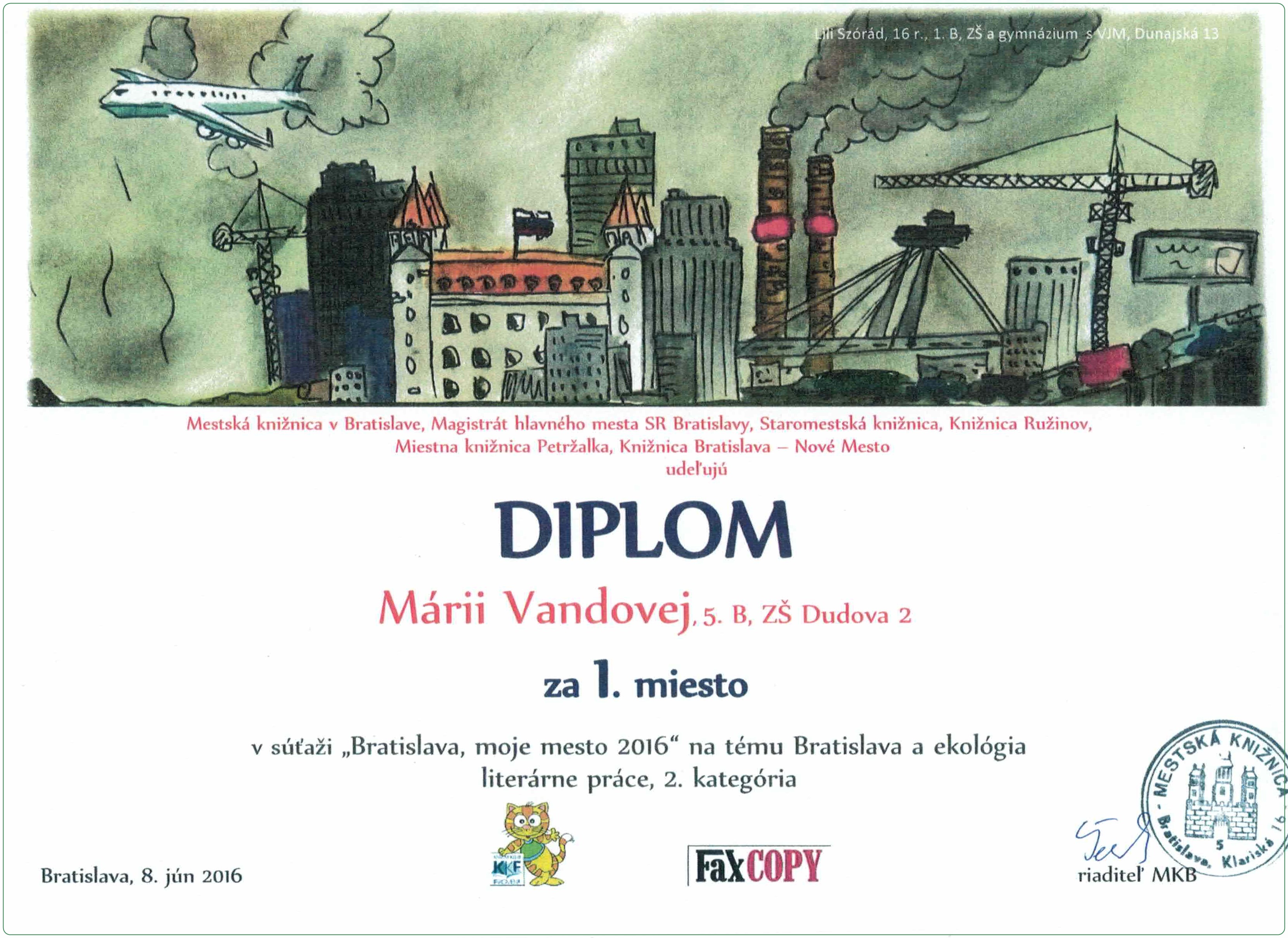 keď naša žiačka MÁRIA VANDOVÁ,