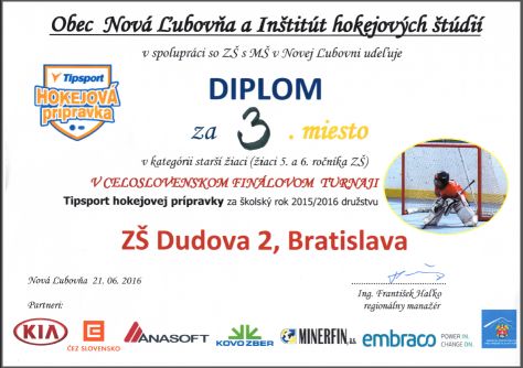 Naši žiaci vyhrali všetky zápasy Tipsport hokejbalová liga v tomto školskom roku a postúpili na MAJSTROVSTVÁ SLOVENSKA, ktoré sa uskutočnili dňa 21.6.2016 v Novej Ľubovni.